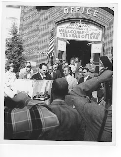 Guy on left, speaking into mike (dark suit), is my grandfather. Guy next to him on the right, in the grey suit? Anyone?